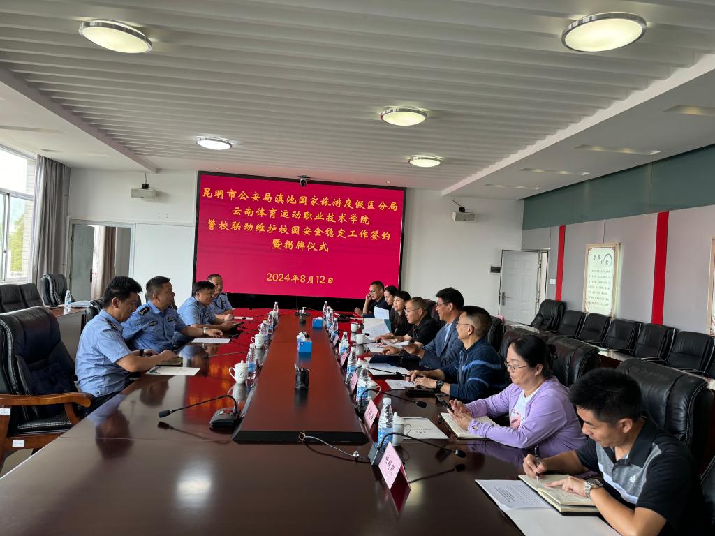 2024年8月12日上午,YABO鸭脖官网与昆明市公安局滇池国家旅游度假区分局警校联动维护校园安全稳定工作签约暨警校联合工作室揭牌仪式在学校教二楼举行。