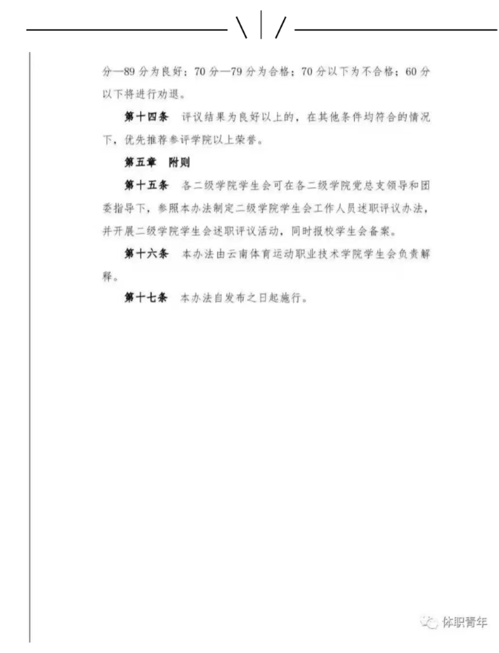 第三十二条成员口头提出支持,但拒绝提交辞职申请,又不履行职责的,依据《关于加强和改进学生干部队伍建设的方案》有关要求,予以免职,办公室每月集中公示干部调整通知。