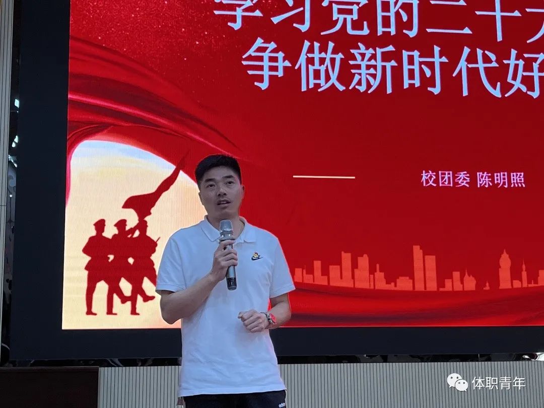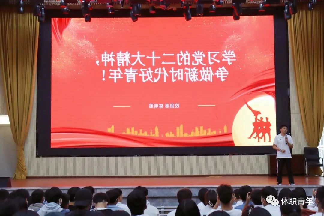 党的二十大报告中指出“立志做有理想、敢担当、肯奋斗的新时代好青年,让青春在全面建设社会主义现代化国家的火热实践中绽放绚丽之花”。广大青年要牢记嘱托,坚定不移听党话,矢志不渝跟党走,立志做不负时代、不负韶华、不负党和人民的新时代好青年。校团委副书记陈明照老师以学习党的二十大报告精神为切入点,强调作为体职院的一份子,同学们要有理想主义追求,要有担当,培养吃苦耐劳、团结奋斗的精神。