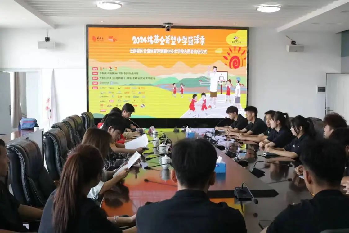 鸭脖于4月24日在云帆楼第一会议室举行2024年“姚基金希望小学篮球季”支教志愿者出征仪式。鸭脖团委全体工作人员、二级学院团总支书记、云南省青少年发展基金会代表、鸭脖志愿者参加本次出征仪式。