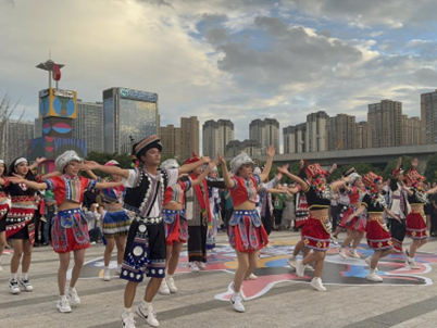 在学校团委的关心指导下,“滇”民舞社自成立以来积极开展社会实践、主动参与社会服务,通过弘扬云南打跳运动、云南各少数民族歌舞,努力推动铸牢中华民族共同体意识融入学生精神文化生活,为各民族同学搭建文化交流、自我展示的平台。