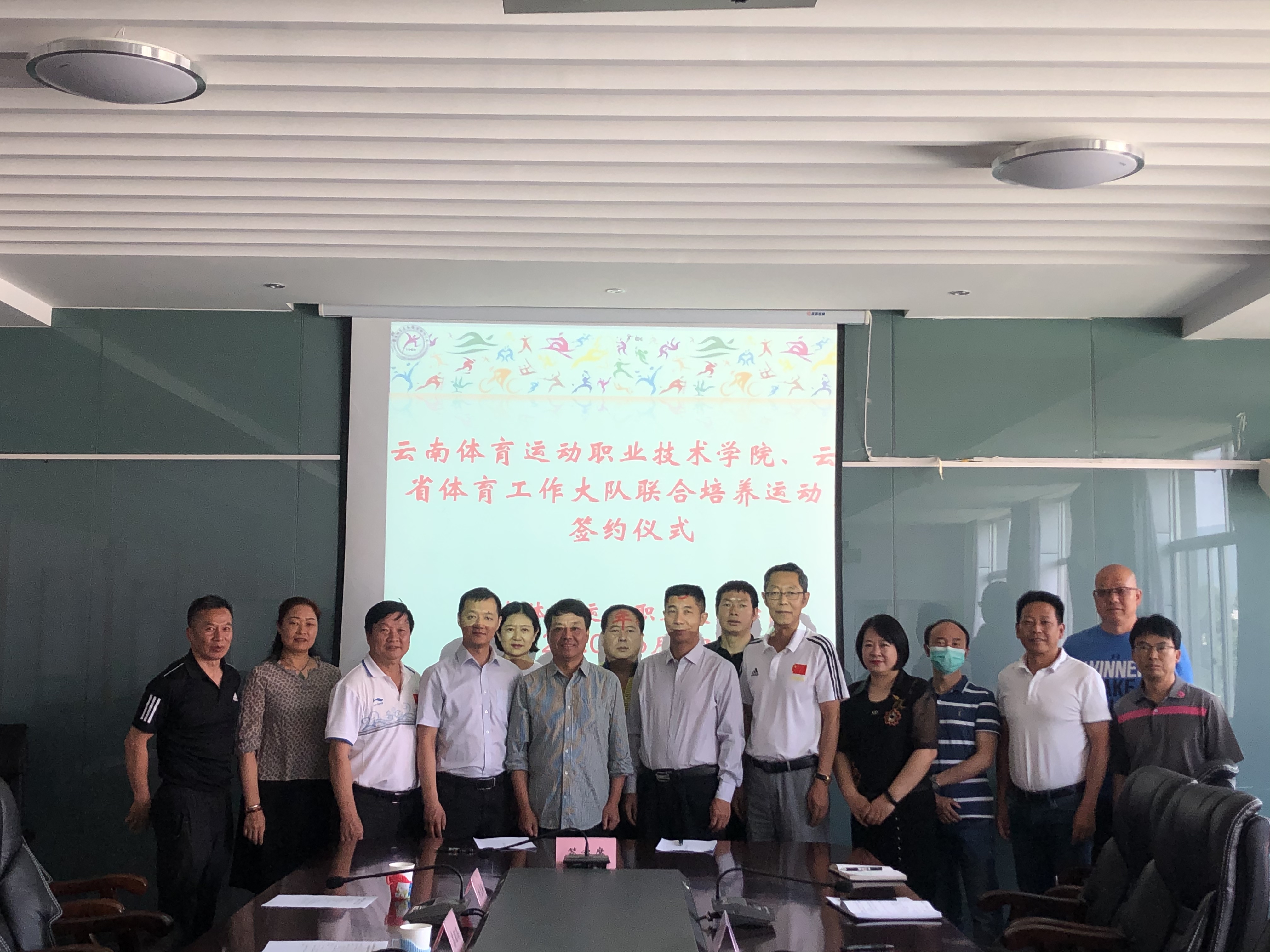 2020年6月3日上午,YABO鸭脖官网和云南省体育工作大队联合培养运动员签约仪式在鸭脖举行。学校党委书记陈麟同志,党委副书记、院长代红兵同志,党委委员、副院长许维平同志,云南省体育工作大队主要领导,学校竞技体育学院全体职工及相关人员参加仪式。签约仪式由党委委员、副院长许维平同志主持。