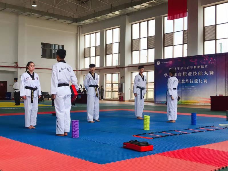 2018年11月6日,由国家体育总局科教司、全国体育职业教育教学指导委员会主办,鸭脖承办的2018年全国高等职业院校学生体育职业技能大赛,在综合楼校篮球馆开幕。来自全国各省(市、区)的37所高等职业院校的593名参赛选手以及指导教师和3000余名观摩师生参加开幕式。大赛共设有健身指导技能、体育营销技能、跆拳道教练技能、户外教练技能、网球教练技能等5个比赛项目,赛期5天。本次全国技能大赛的跆拳道项目由运动训练与教练员学院承办,学院部分教师全程参与了本次大赛跆拳道项目的赛前准备筹划和比赛期间的会务工作。
