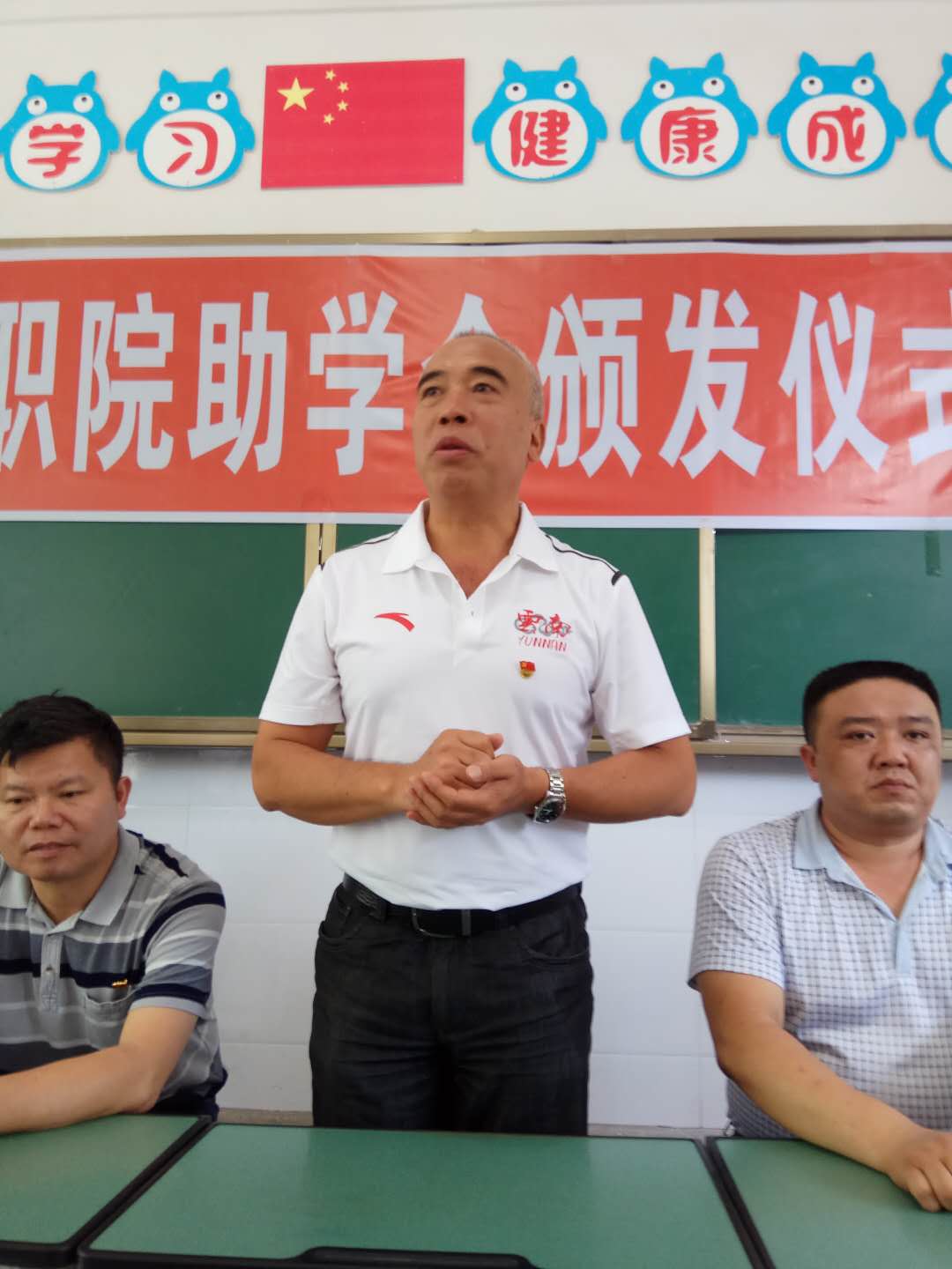 董从民表示:一是代表学院党委和威信县委对各位莘莘学子取得优异的成绩表示衷心的祝福;二是云南体职院不会让任何一个家庭任何一个同学因为贫困而辍学,对贫困学生的资助会一直坚持下去;三是同学们要在学校安心读书、认真学习,不枉家长和社会的培养,将来做一个栋梁之才建设家乡,回馈家乡、回报社会,将感恩的美德传承下去。