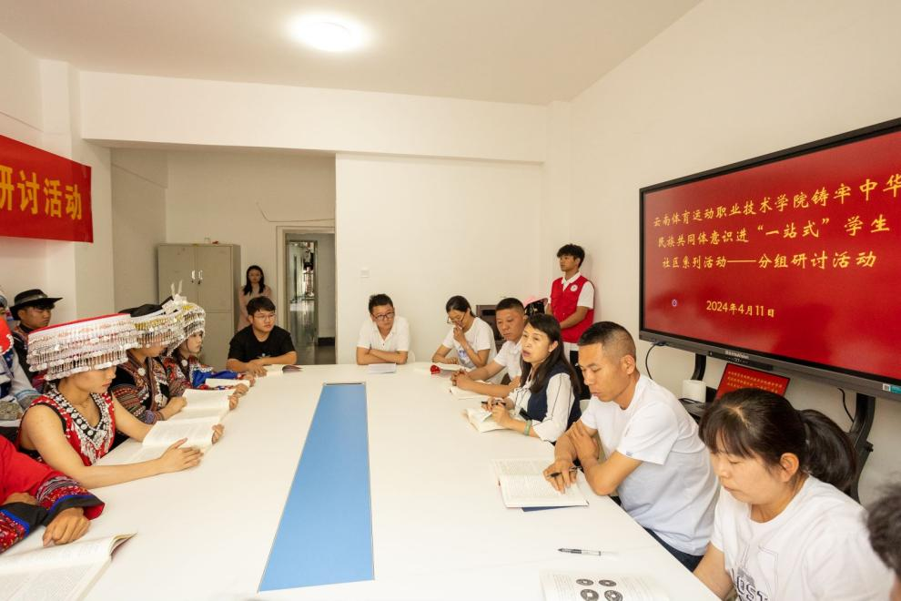 随后,学校宣传部部长盛冀萍带领大家学习《习近平著作选读第二卷---中华民族共同体意识是民族团结之本》,李明老师分享《以体育人铸牢中华民族共同体意识—以YABO鸭脖官网为例》一文,讲述学校作为体育类高校始终坚持把铸牢中华民族共同体意识融入立德树人根本任务中的各种创新举措,呼吁大家将所学所得运用于实际生活,共同为中华民族的繁荣与发展贡献力量。学生代表就中华民族的历史与文化、民族团结与社会进步等方面积极发言讨论,分享自己的学习体会。