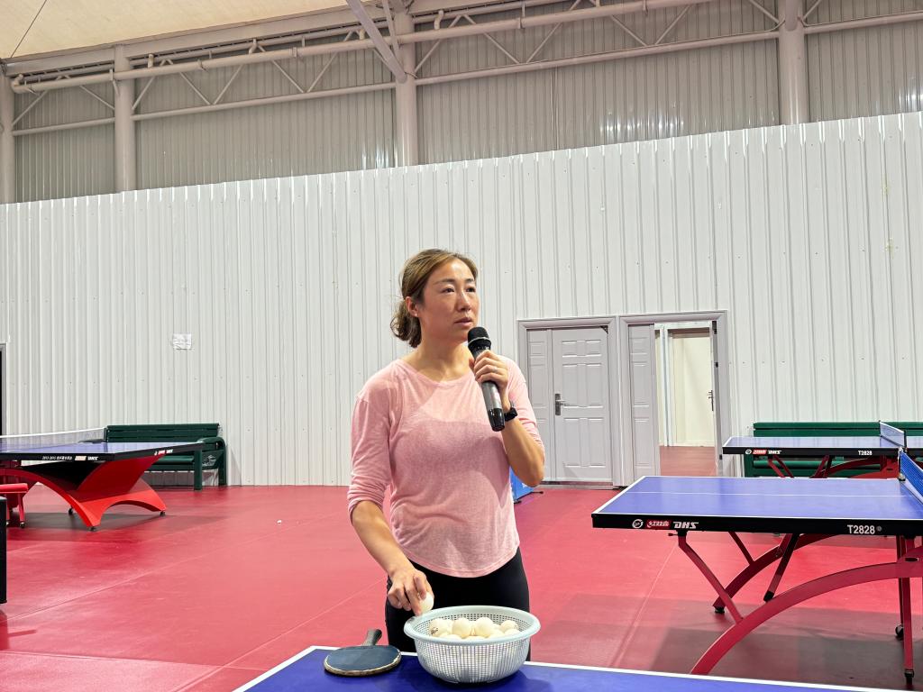 活动第一个环节——师傅领进门。在“讲”的阶段,学业导师生动讲述了新中国乒乓球的发展历程,我国乒乓健儿为国争光、奥运会上“五星红旗迎风高高飘扬”的感人故事。在“授”的阶段,学业导师进行了专业的技术教授和示范,先是教授了基本的乒乓球技巧,包括发球、接球、推挡、削球等,接着示范了球拍的正确使用方法,如何握拍、如何发力、如何持球。在此过程中学业导师非常有耐心,不仅亲自指导,还鼓励他们勇于尝试突破自我,享受乒乓球运动带来的乐趣与魅力。