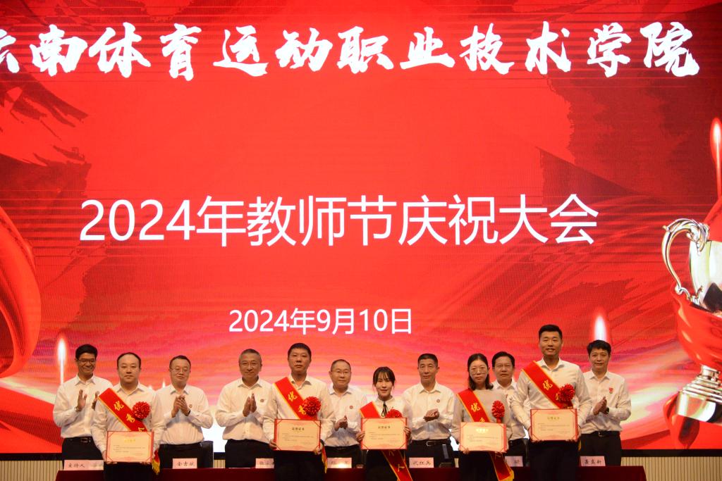 会上,教学工作先进个人符仕平、新入职教职工代表谭红分别作了发言。学生代表马丽为老师们送上节日祝福。随后,在党委副书记、院长代红兵同志的带领下,全体教师面向国旗,庄严宣誓,立志为党和人民的教育、体育事业奋斗终生。