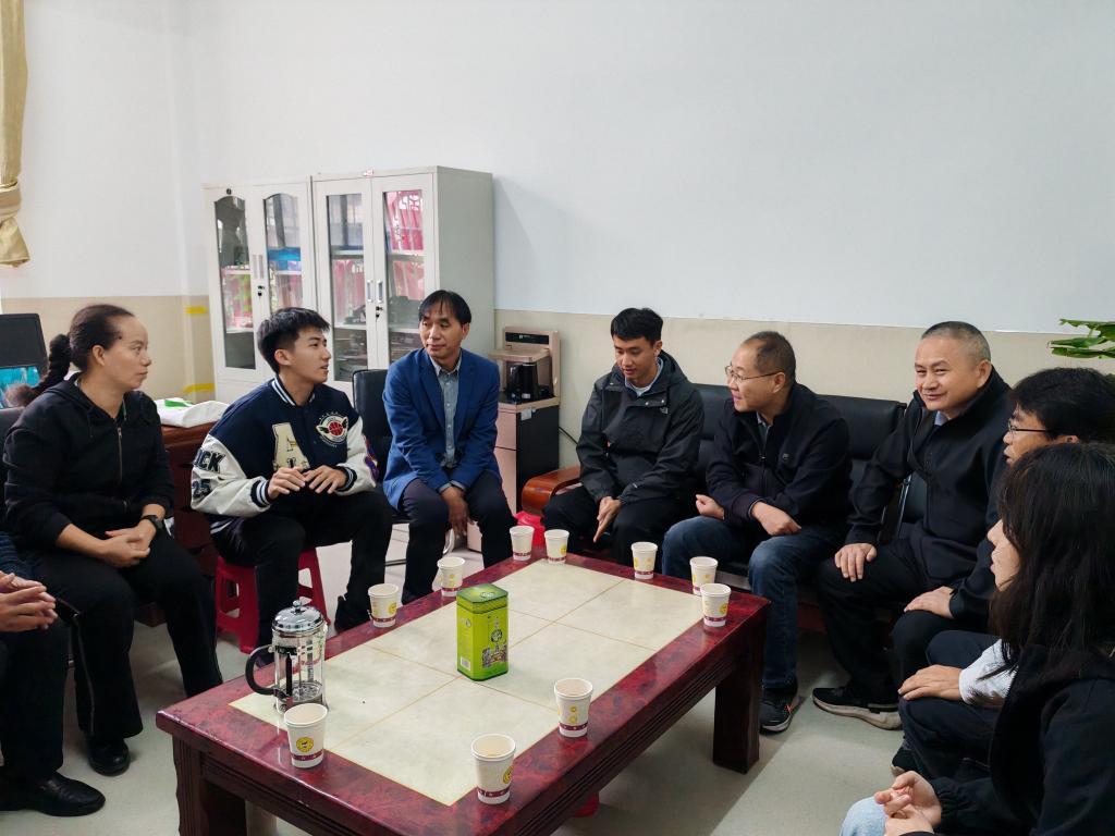 在古登乡中心完小,调研组与支教同学座谈。王海超同学表示:感谢体职院领导、老师对支教学生的关心、支持和培养,感谢驻点学校老师的悉心指导、帮助,使大家快速完成角色转换,在短短的两个月时间内,已经适应了实习岗位,不管是在上体育课方面,还是组织学校运动会、教跳“哈尼宝贝”团体操等方面都出色地完成了任务。接下来的时间会再接再厉,圆满完成支教任务。