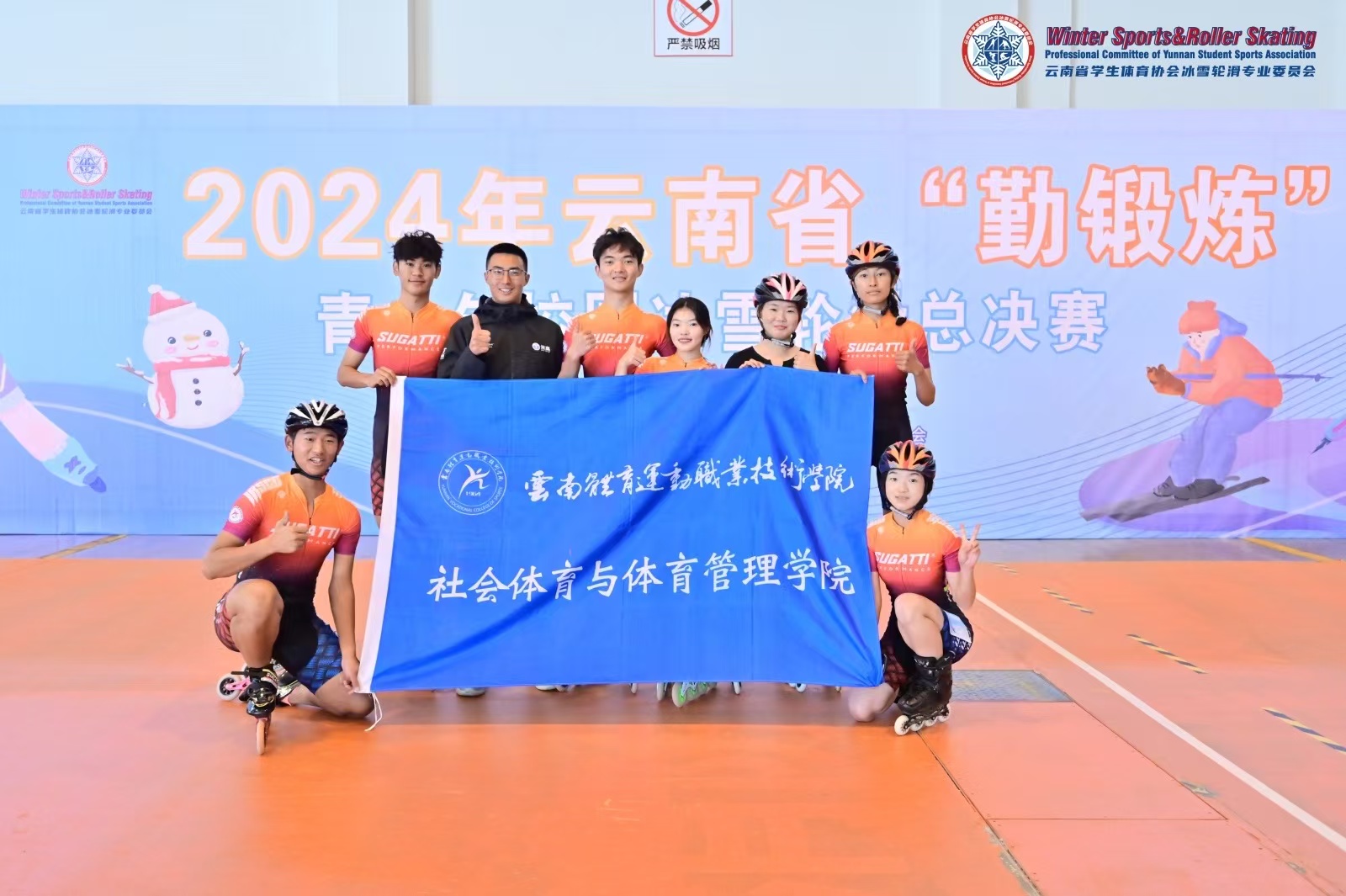 11月22日,2024年云南省“勤锻炼”青少年校园冰雪轮滑总决赛在云南滇池国际会展中心举办。鸭脖轮滑运动员在本次轮滑比赛中大放异彩,凭借卓越的技术和出色的团队协作,成功斩获多项佳绩。其中,詹欣康同学获得男子组500+D计时赛第一名,吴朝艳同学获得女子组500+D计时赛第一名,周为淮同学获得男子组Miniramp组第一名。最终,鸭脖获得大学组团体总分第二名。