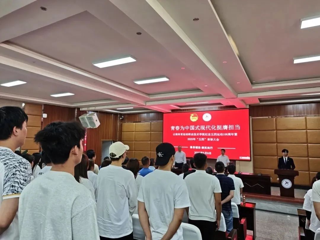 校团委书记陈明照宣读表彰决定。体育教育学院团总支、运动健康学院团总支荣获“五四红旗团总支”称号,2023级体育教育1班团支部等5个团支部荣获“五四红旗团支部”称号,并对荣获优秀团支部书记、优秀共青团干部和优秀共青团员等荣誉的个人代表进行表彰。