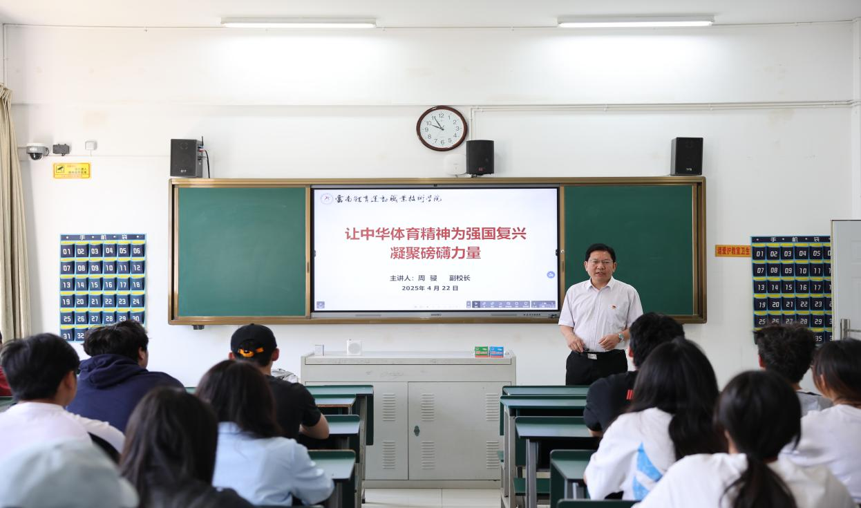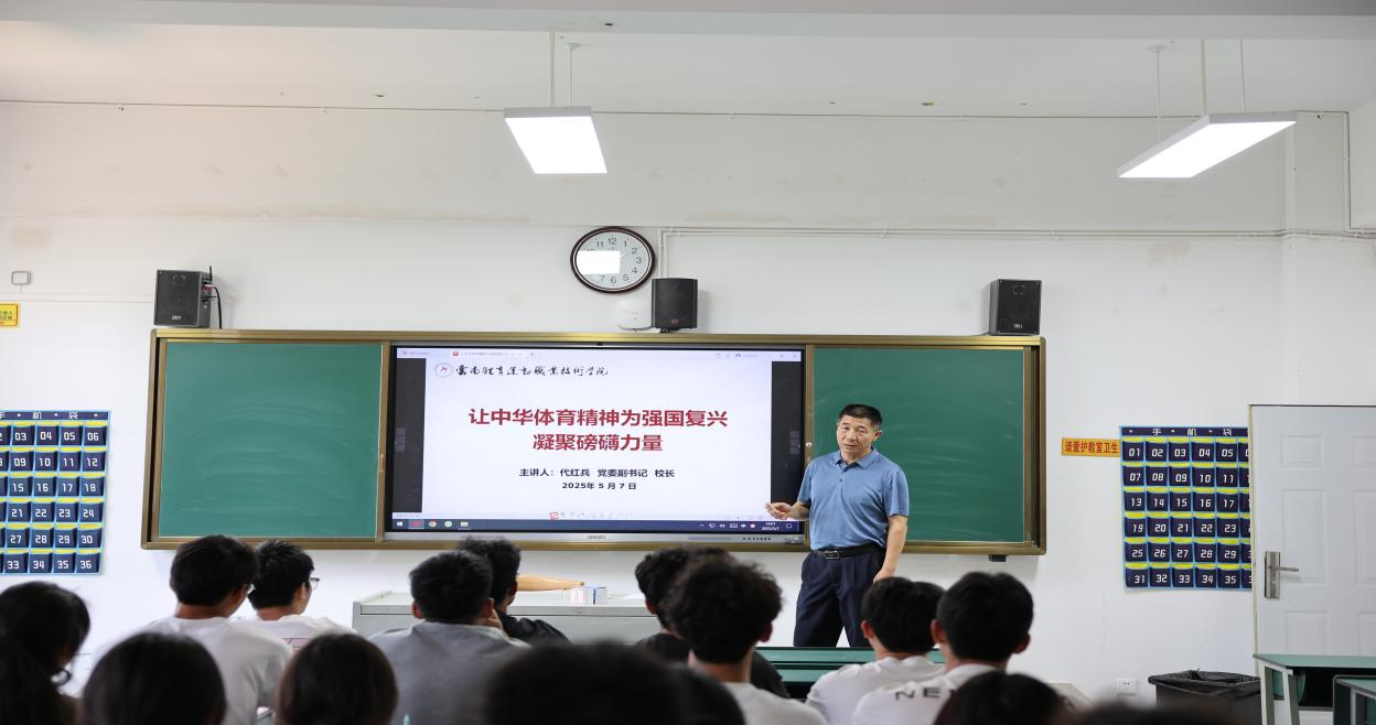 党委副书记、院长代红兵深情回顾了云南体职院薪火相传的体育故事,以身边人、身边事激励青年学子传承弘扬中华体育精神,通过鸭脖在云南省第十六届大学生运动会上,鸭脖运动健儿奋勇拼搏,勇夺金牌榜和奖牌榜双第一的优异成绩,鼓励学生要在建设体育强国、实现中华民族伟大复兴的新征程上,跑出属于体职院学子的青春加速度。
