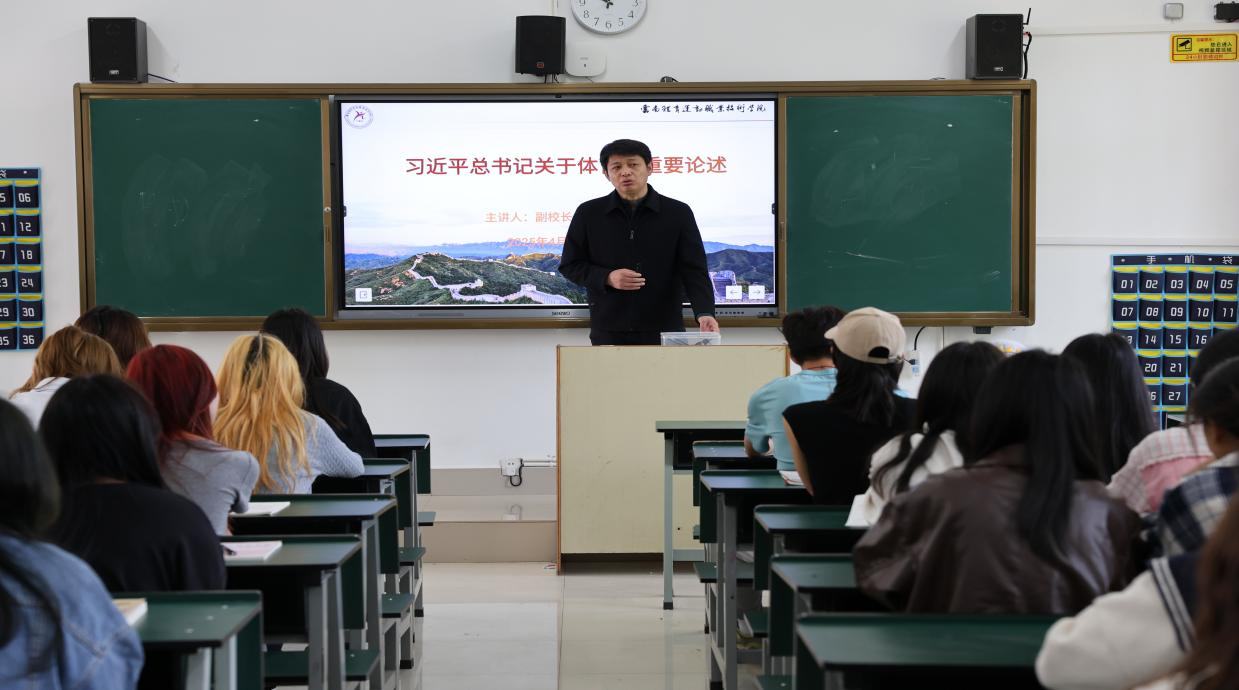 此外,其他校领导也走进课堂讲授“学习习近平总书记关于体育的重要论述”“铸牢中华民族共同体意识”“从廉洁文化传承中汲取力量,共筑体育强国与时代担当”等专题思政课,一堂堂有理论高度、有实践深度、有情怀温度的思政课在同学中引发热烈反响。2024级运动训练高本贯通班田近同学说“课堂上讲述的榜样故事和体育精神震撼人心!作为未来的体育人,我们深感责任在肩。定将这份精神融入训练实践,为建设体育强国贡献青春力量”。2024级康复4班龙韩同学说“大家认真聆听、深入思考,课堂氛围热烈。于我而言,作为新一代体职院人,生逢盛世更应有所作为,当立报国强国大志向,做挺膺担当奋斗者。”