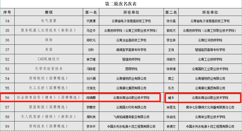 近日,2025年云南省职业技能大赛暨第三届全国技能大赛云南测试选拔赛社会体育指导(健身)赛项传来捷报,鸭脖阿锦麟和臧卡老师分获第一名和第二名,充分彰显了鸭脖健身指导与管理专业教师扎实的理论功底、精湛的专业技能和突出的实践能力。