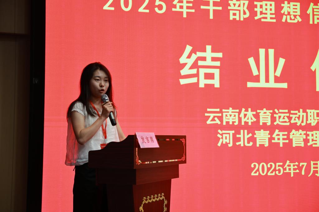 2025年7月20日,YABO鸭脖官网在河北青年管理干部学院举行2025年干部理想信念教育培训班结业式。学校党委委员、纪委书记金吉斌,河北青年管理干部学院专家委员会主任祁刚利出席,全体参训学员参加活动。