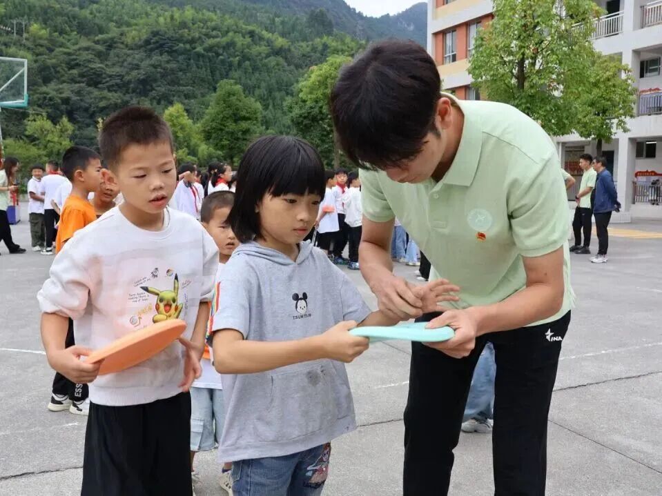 在此次支教活动的特色课程中,飞盘体育课不仅为孩子们带来了户外奔跑的活力,更在无形中成为滋养心理健康的 “阳光课堂”。