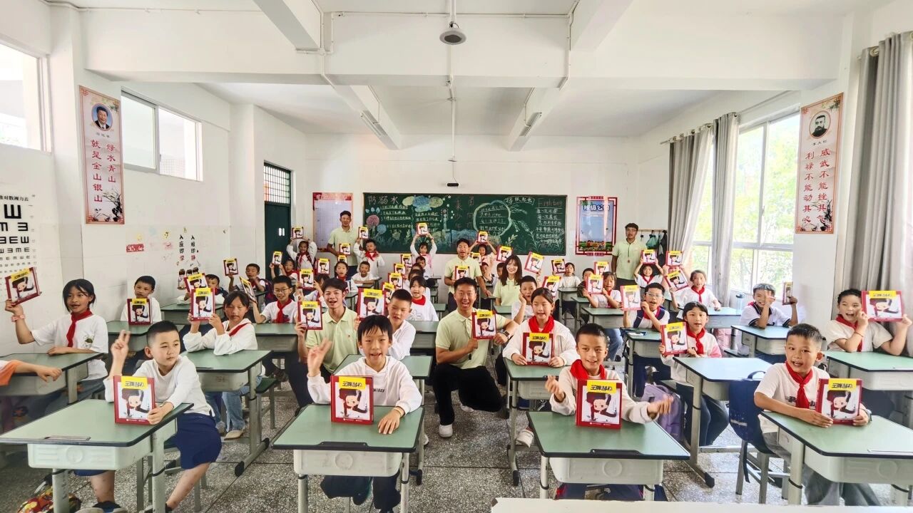 活动中,支教团还为孩子们送上了一份特殊的 “精神礼物”——学校杰出校友、奥运体操冠军郭伟阳的自传《王牌替补》。支教团成员向孩子们讲述了郭伟阳从“替补”一路拼搏,最终站上奥运领奖台的故事,鼓励孩子们从冠军的奋斗经历中汲取力量,勇敢追逐梦想,让体育精神在心中生根发芽。