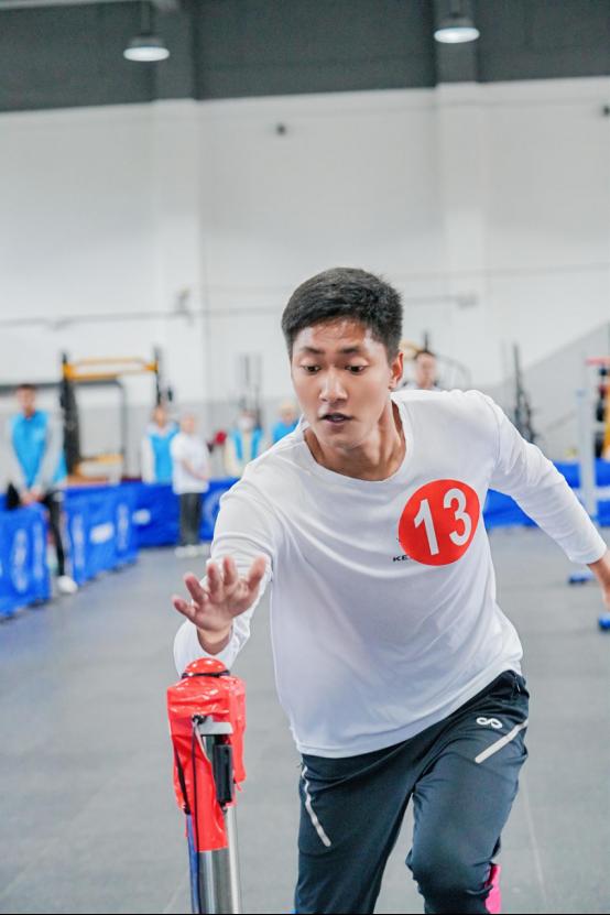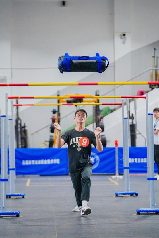 健身指导赛项于10月15日至16日展开激烈角逐。该赛项分为技能竞赛与体能竞赛两个模块,全面考察选手的综合专业能力。16日上午进行的体能竞赛将赛事推向高潮,来自全省18所高职院校的58名选手同台竞技,依次完成跳短绳、运沙袋过杆与折返跑三项高强度体能项目。比赛设5分钟“关门时间”,不仅考验选手的爆发力、协调性与耐力,更是一场意志与战术的较量。