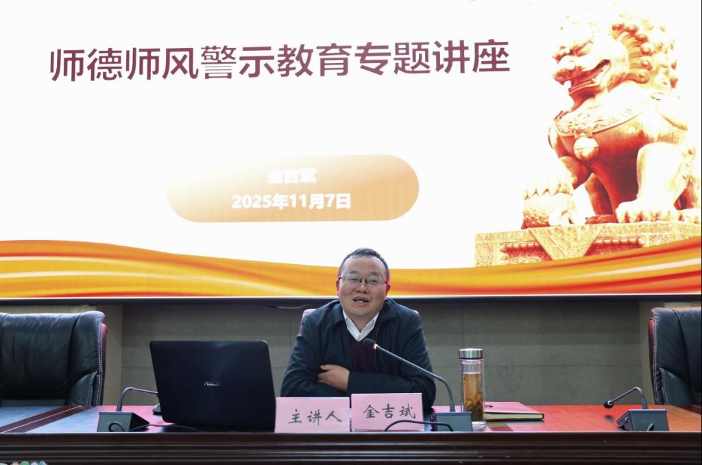 会上,学校纪委书记金吉斌作了师德师风警示教育专题讲座,对《新时代高校教师职业行为十项准则》进行系统解读,剖析了教育部公开曝光的违反教师职业行为十项准则的典型案例。金书记强调师德红线不可触碰,全体教师要坚守廉洁从教,自觉将为党育人、为国育才使命融入教学科研全过程,争做“四有”好老师,筑牢师德根基,共同营造风清气正的育人环境。
