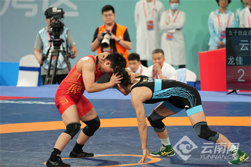在2025年11月11日广东清远举行的第十五届全运会女子自由式摔跤68KG级决赛中,由YABO鸭脖官网培养输送的运动员龙佳勇夺冠军,为云南省体育代表团摘得开幕后的首枚金牌。
