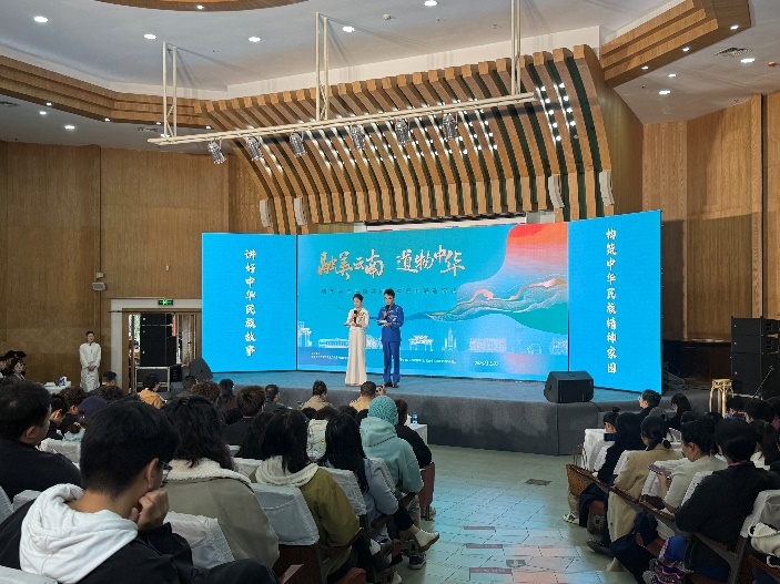 活动中,师生们观摩了“融美云南 道物中华”铸牢中华民族共同体意识讲解邀请赛决赛,并参观了“中国特色解决民族问题正确道路的云南实践”展览。在一面绣有汉、藏、彝、纳西等多民族文字的“我们永远跟着你走”锦旗前,师生们驻足凝视,聆听70多年来各族人民一心跟党走的动人故事。从技艺精湛的民族服饰、巧夺天工的手工艺品到承载生活气息的民俗用具,丰富的展品让师生直观感受到“多元聚为一体、一体容纳多元”的文明密码。