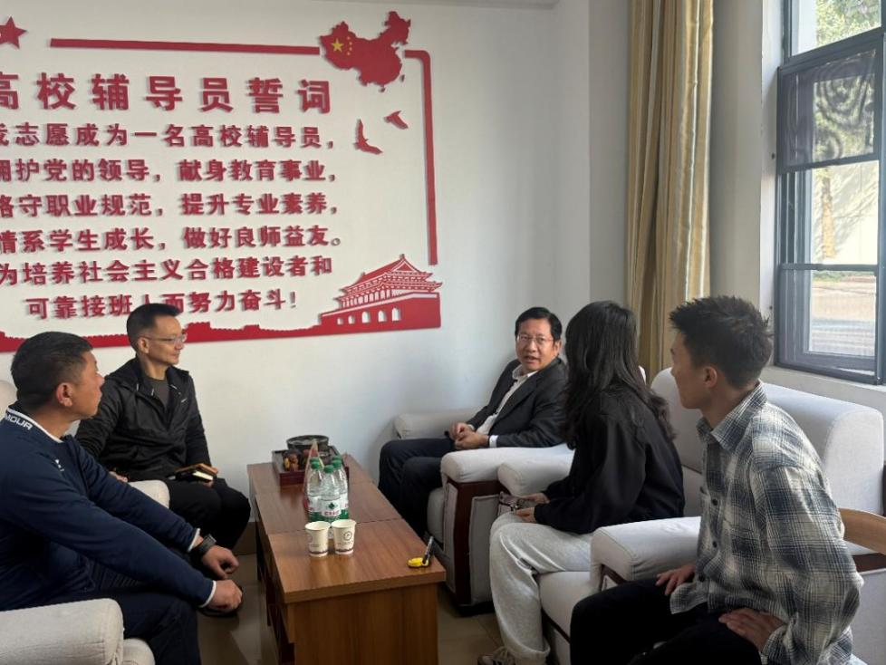 校领导一行随机走访学生宿舍,与同学们围坐畅谈、亲切交流。周骎副校长关切询问同学们的学习进展、生活起居及未来规划,重点倾听大家在宿舍设施维护、社区管理服务、文化活动开展等方面的诉求与建议。他叮嘱同学们要珍惜同窗情谊,互帮互助、共同进步,营造团结向上的宿舍文化氛围;鼓励大家充分利用社区搭建的党团活动、学业辅导、心理支持等多元平台,主动参与实践、锤炼本领,实现全面发展。