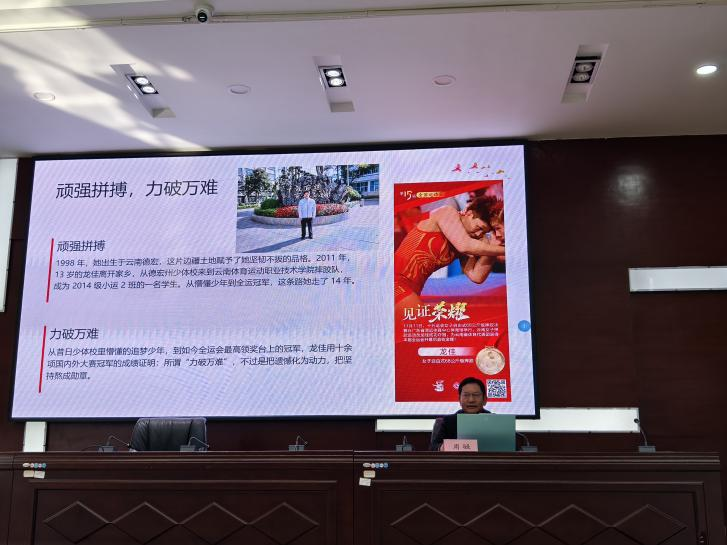 党课上,周骎副校长以鸭脖学子龙佳勇夺全运云南首金,著名运动员张雨霏奖牌大丰收等热血瞬间切入,引发学子强烈共鸣。他通过江苏代表团临时党委下沉赛场破难题、党员骨干结对帮扶等案例,阐明党建是体育竞技的精神底气;以龙佳十几载拼搏圆梦全运的成长故事,并结合训练场景解读科学求实、团结协作、遵纪守法的深刻内涵。