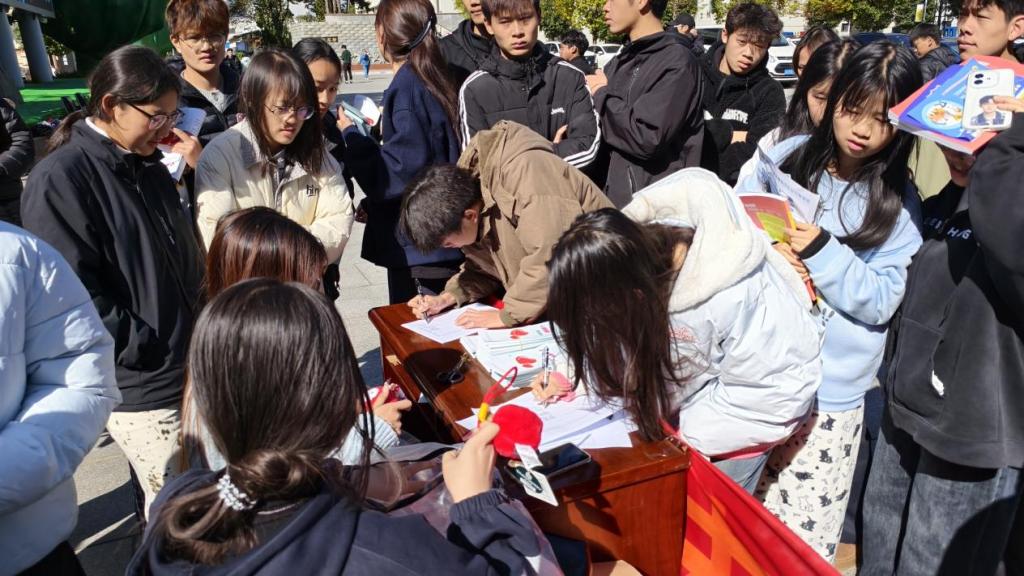 活动现场,学生处心理健康教育中心的教师和学生志愿者向同学们发放《心理健康知识手册》,并主动为同学讲解手册内容。活动现场气氛热烈,同学们纷纷驻足领取手册,并与现场教师交流。