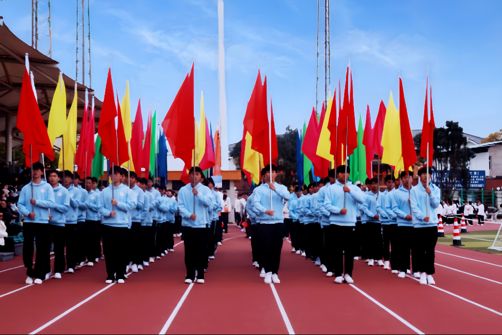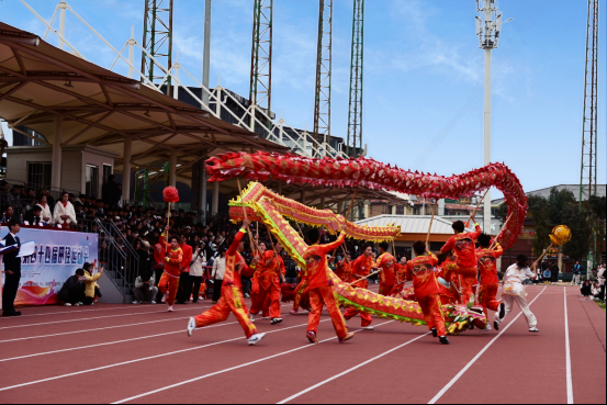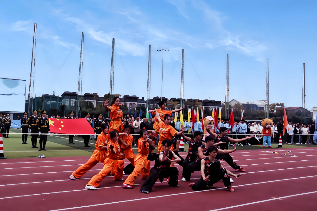 党委书记缪军宣布本届运动会开幕。随后,学生们表演了武术、民族健身操等特色节目,展现了学校体育文化的丰富多彩。