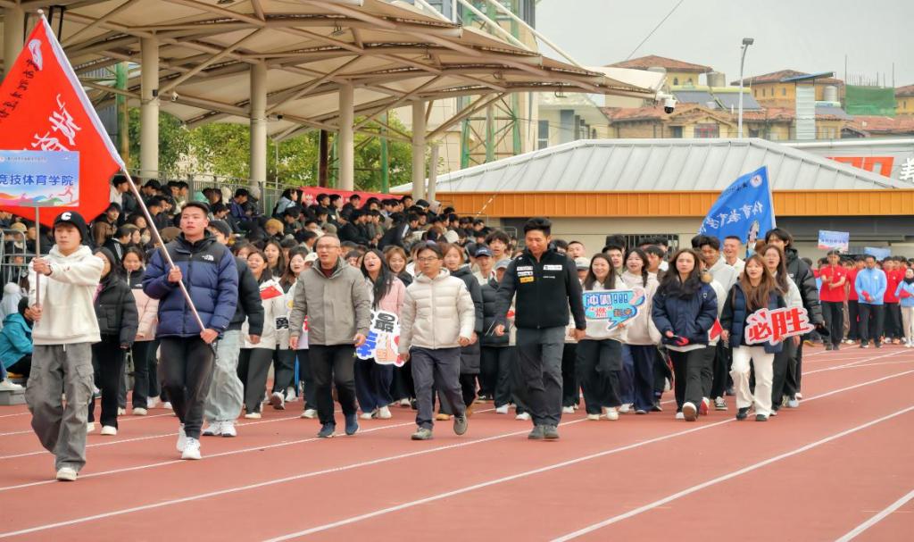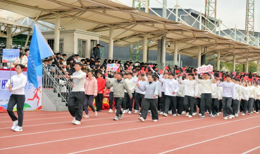 开幕式上,国旗方队、校旗方队、花束队、彩旗队及各二级学院方队精神饱满、步伐整齐,展现了体职院师生昂扬向上的精神风貌。