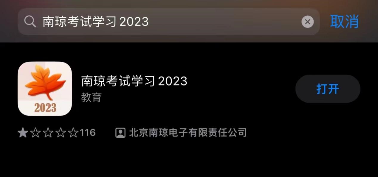 1、苹果系统搜索:南琼考试学习2023(图标上带有2023),并下载