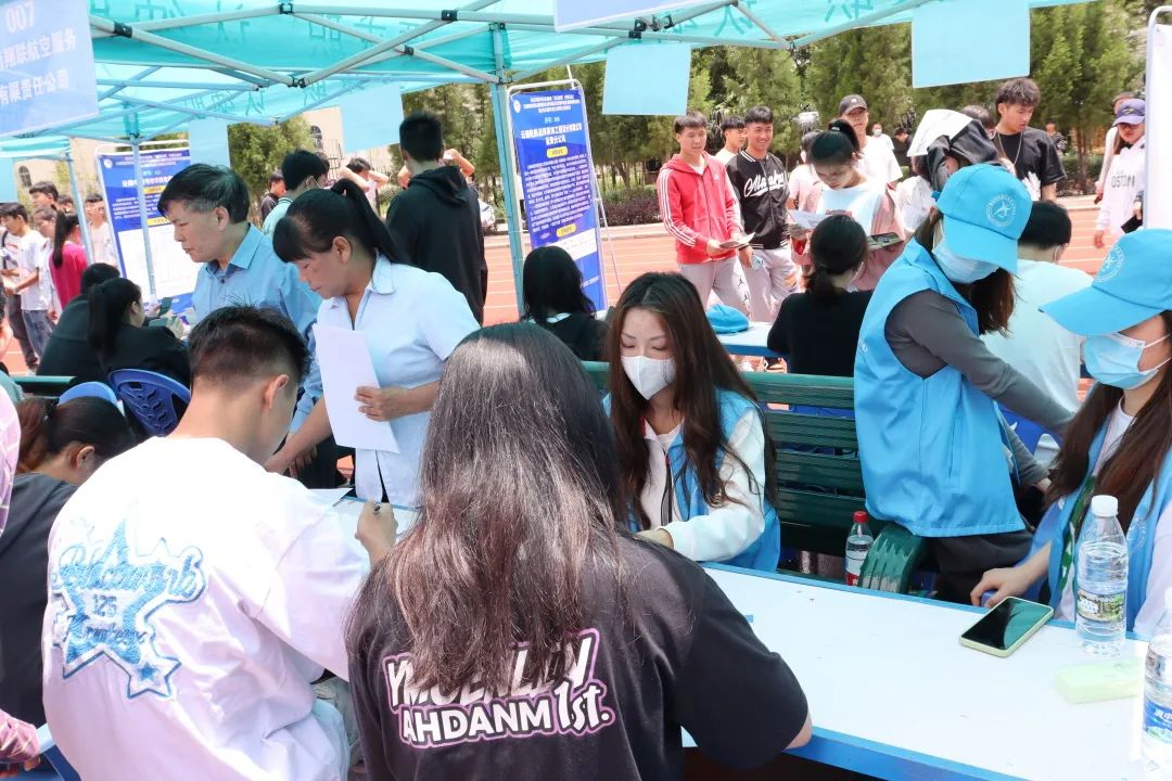中午12时志愿者们热情高涨的提前到达指定位置。本次活动于中午13时正式开始用人单位提前且有序进入会场指定位置进行招聘准备。下午13时“双选会”招聘活动正式开始,毕业生们陆陆续续的来到小田径场,青年志愿者们也开始忙碌起来,服务组在接人、送东西、安排车位,客服组在耐心的给毕业生们详细介绍招聘需求、薪资待遇、发展前景,并帮忙收及简历投递给要招聘的公司,签到组正在给进入学校的招聘公司签到,引导组负责带路,面试组在申请教室给要招聘的人面试毕业生。志愿者们各司其职将活动进行的有条不紊。