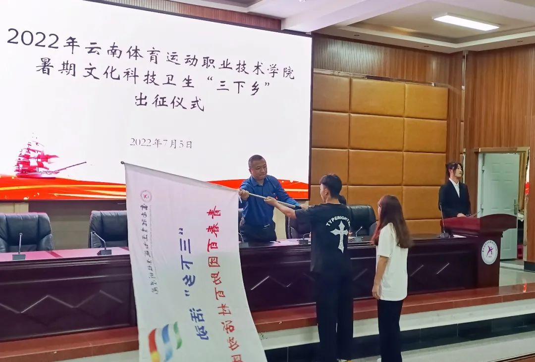 7月5日,YABO鸭脖官网2022年大学生暑期文化科技卫生“三下乡”社会实践活动出征仪式在学校第一报告厅召开。校党委副书记张永和、校团委副书记陈明照和校学生会有关人员参加本次出征仪式。
