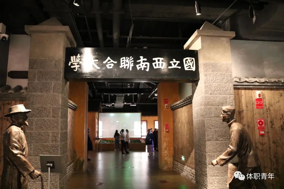 紧接着大家来到西南联大博物馆展馆内,更加详细地了解西南联大组建的社会时代背景、教学体制、校徽校训、院系组织机构、艰苦的教学环境、科研成就、杰出校友以及联大师生对云南地方教育文化事业作出的贡献。“救国不忘读书,读书不忘救国”。