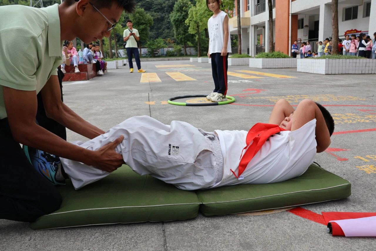在2025年暑期大学生“三下乡”社会实践活动期间,团队在威信县观音小学开展红色体育示范课。课堂上,队员以红色教育步道为教学场地,结合步道沿途图文展示点,引导学生沉浸式了解中央红军在威信的足迹与扎西会议历史意义;通过“巧渡金沙江”“四渡赤水”等体育游戏,将红军长征精神融入体能训练与团队协作任务,让学生在体育课堂中感悟革命精神。