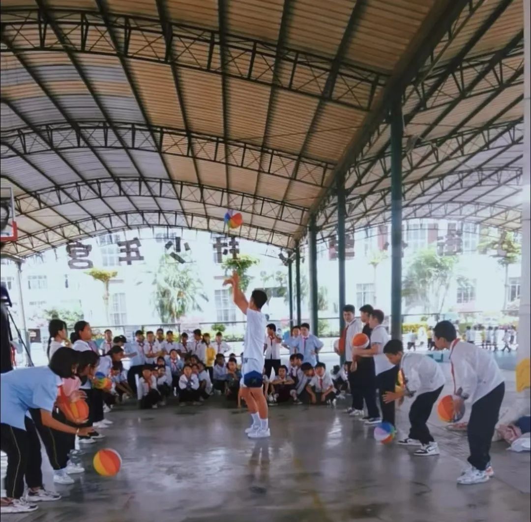 这周带了一个只有二十一个学生的班级,这个班级跟其他班级不一样,特别听话,老师说什么就会去做什么。他们原本不属于这个学校,因为他们的学校拆了要重新修,他们来到了现在这个小学暂住,他们跟原本这个学校的学生不一样,他们都是来自比较贫困的家庭,都很珍惜体育课,珍惜体育老师教给他们的东西,这是我比较有感触的一件事。一颗篮球不大,直径只有24.6cm,却装下了我和他们的整个青春。
