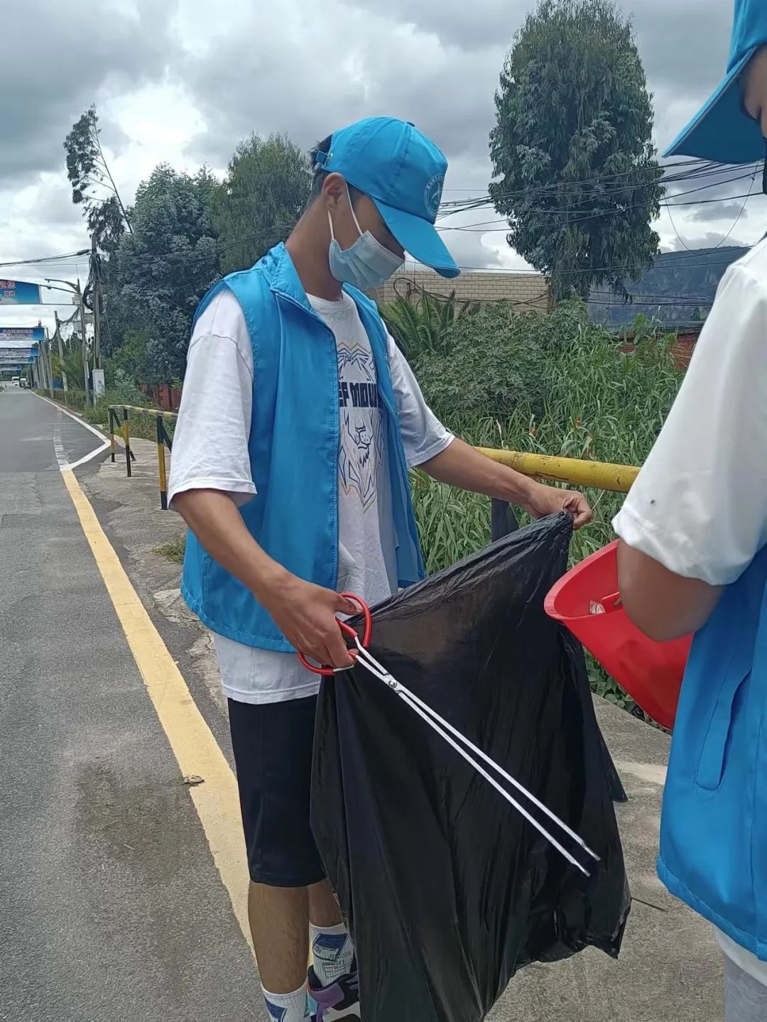 下午12:30,志愿者们在鸭脖南门集合领取工具后开始行动。映入眼帘的是河流垃圾污染问题严重,随处可见的都是废弃物。但是,这并不影响我们志愿者的干劲,志愿者们每个人都仔细的捡拾着河岸上的塑料袋与道路旁的空瓶子及烟头。