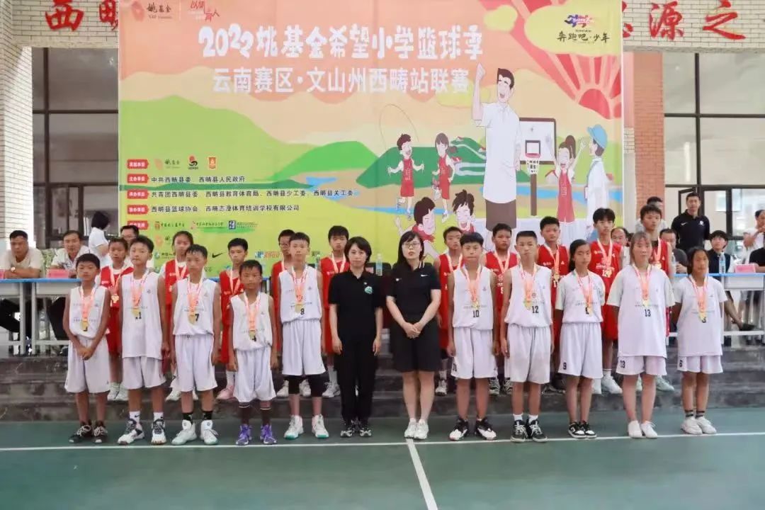 北京姚基金公益基金会项目总监李雪、共青团西畴县委书记王金璐、县教体局副局长姚志琼、县篮协会长龙文宇、文山市篮球协会名誉会长赵国智、西畴志澄体育总经理李兵出席闭幕式并为获奖队伍颁奖。