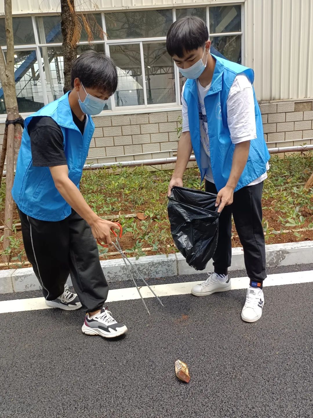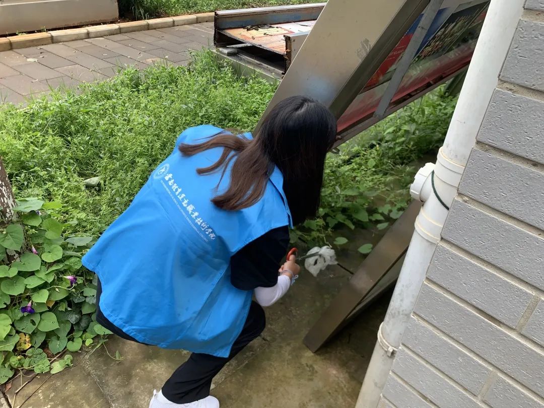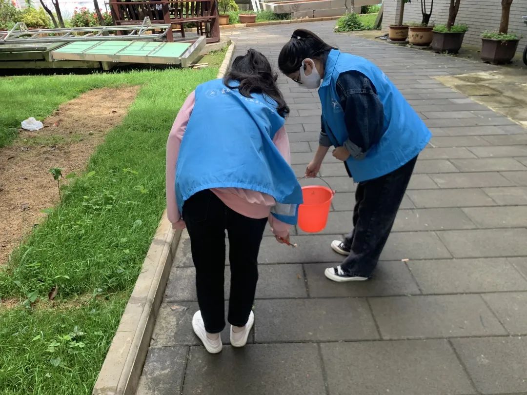 烈日当空的中午,志愿者们遵照鸭脖疫情防控要求,带上口罩,穿上志愿者服装,穿梭在校园各个角落,只为打造干净、整洁、安全的校园环境。