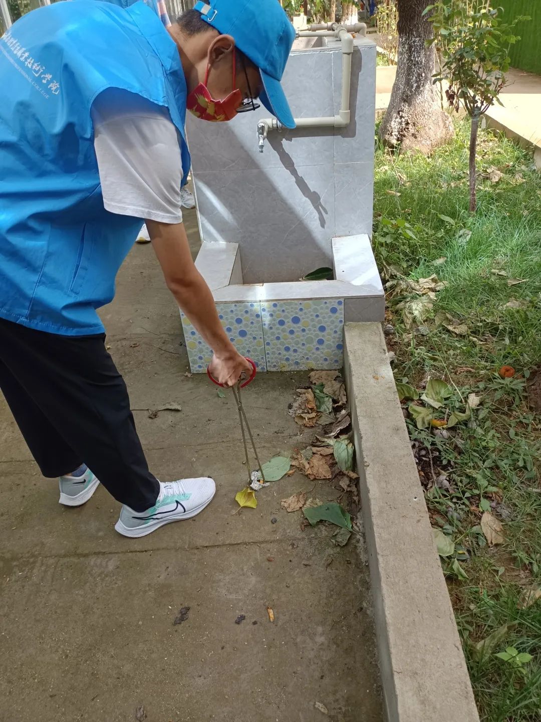 虽然天气炎热但是青年志愿者协会的同学们撸起袖子加油干,对校园各个角落里的垃圾进行清理,开展人人弯腰捡纸,不乱扔,节约每滴水、每度电、每张纸的宣传,分工明确、积极投入使校园焕然一新。