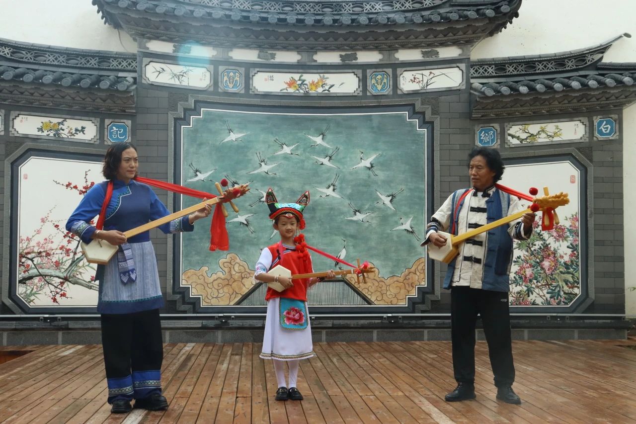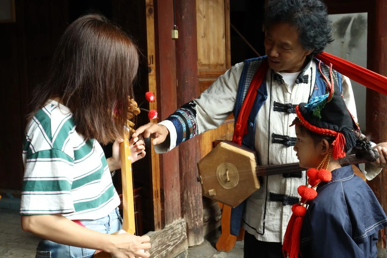 在阿鹏艺术团的小院中,白曲传承人姜宗德和施永妹带着他们的小弟子,弹起三弦,哼唱白曲,向我们展示着白曲的独特魅力,我们不仅欣赏到了精彩纷呈的民乐演奏,更看到了非遗传承人的坚守和传承。通过非遗白曲的熏陶,我们对民族音乐的认识不断深化,对民族文化的认同感和自豪感也得到了加深。