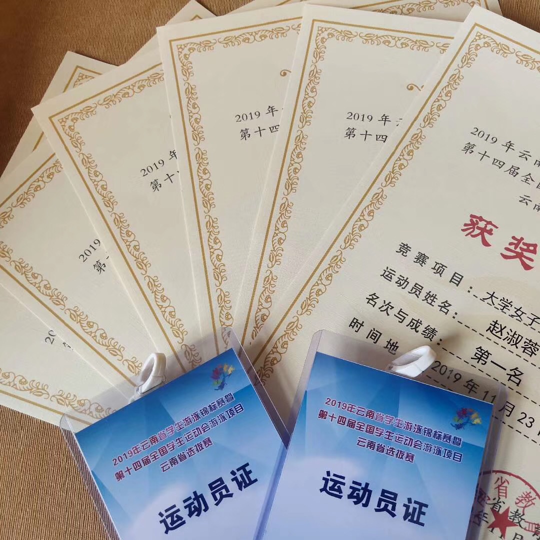 2019年云南省学生游泳锦标赛暨第十四届全国学生运动会游泳项目云南省选拔赛于2019年11月22——24日在普洱市思茅区第一中学举行。为了促进我院竞技体育的发展,展现我院运动健儿的魅力,YABO鸭脖官网竞技体育学院选派游泳教练员李雯,运动员:赵淑蓉、李晓梅参加云南省学生游泳锦标赛。本次比赛面向云南省16个州市,共26项比赛项目,其中女子13项,男子13项。我院参赛选手赵淑蓉、李晓梅所参加的6项比赛,经过三天的激烈角逐,最终获得6项冠军的好成绩。