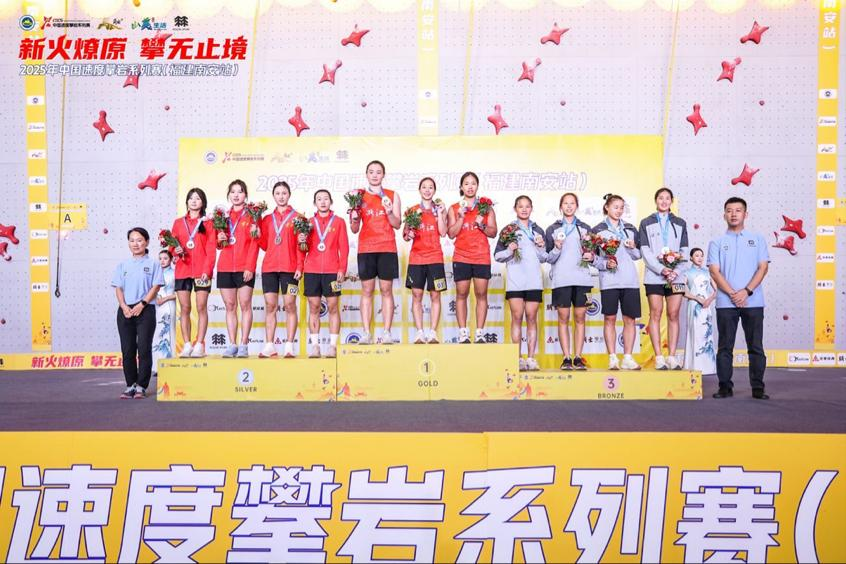 10月12日,2025年中国速度攀岩系列赛(福建南安站)在九都镇天空骑士攀岩基地落幕。云南体育运动职业技术学院攀岩队凭借稳定发挥与默契配合,在三大项目角逐中斩获混合速度接力赛冠军、男子个人速度赛亚军、女子接力赛亚军及女子个人速度赛亚军,以1金3银的亮眼战绩彰显强劲实力。