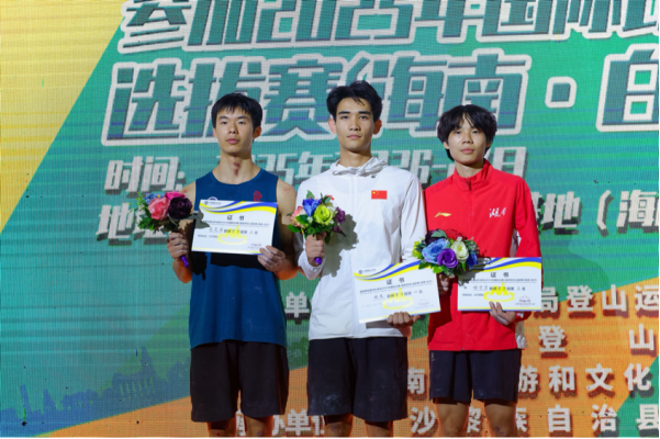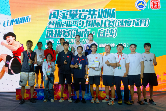 杨杰在国家攀岩集训队2025年国际比赛(速度项目)选拔赛中获得冠军