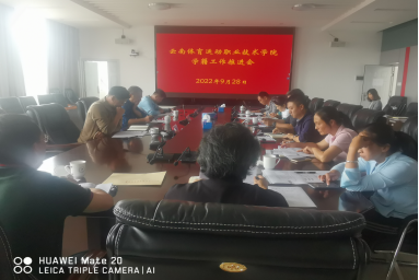 2022年9月29日,学院学生处、教务处、计财处、招就处负责人、各二级学院院长及教务处相关工作人员在云帆楼四楼第一会议室召开2022年学籍工作推进会。会议由教务处副处长王井明主持,学校党委副书记张永和、副校长聂真新、副校长董利民出席会议。会议对2022年学院的学籍管理工作进行了部署,审议了学籍管理和学籍异动的工作步骤、任务分工、时间节点。