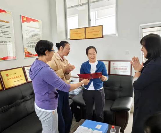 会中杨雪雯书记及司文琴院长为邱杨老师颁发退休教师荣誉证书并合影留念,送出祝福:祝邱老师心情舒畅、退而不休、老有所乐、健康长寿、合家欢乐。欢迎邱杨老师今后常回来看看,对学校的工作给予指导,同时表达对邱老师的依依不舍和美好祝福。