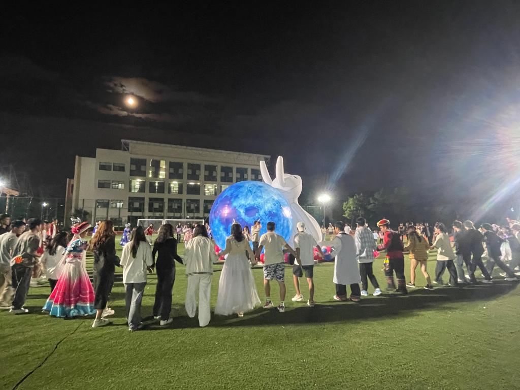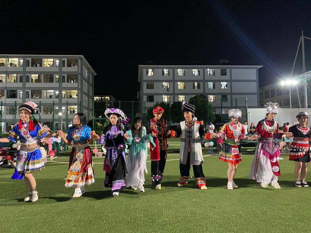 活动现场热闹非凡,师生们欢聚一堂。同学们用动人的歌声表达着对中秋佳节的祝福和对美好生活的热爱。趣味活动丰富多彩,大家欢声笑语不断,做灯笼、猜灯谜环节,充满着浓浓的传统韵味。充满民族特色的打跳环节,将活动氛围推向高潮。师生们手拉手,围成圈,在欢快的节奏中尽情舞动,感受着中秋团圆的喜悦和校园生活的美好。