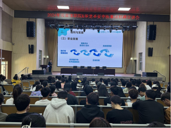 华龙圣爱中医集团围绕集团概况、发展历程和目标、2024年招聘计划、薪酬福利体系、职业发展优势等多方面开展宣讲,让同学们了解了企业的实力和岗位需求,为同学们就业提供了广泛的择业空间。