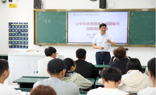 党委书记缪军以“让中华体育精神为强国复兴凝聚磅礴力量”为题,讲述了中华体育精神的形成与发展历程,并通过中国体育健儿在国际赛场奋勇争先、为国争光的生动事例,深刻诠释了中华体育精神是激励一代代中国人砥砺前行的强大动力,鼓励学生要自觉做中华体育精神的传承者、弘扬者和践行者,把赛场上的拼搏精神转化为刻苦学习、苦练技能、追求卓越的实际行动。