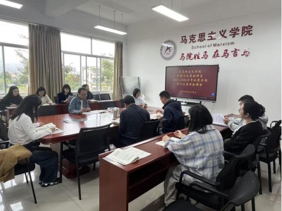 10月16日下午,马克思主义学院形势与政策课教研室在云帆楼314室开展了2025-2026学年第一学期的第三次集体备课会。马克思主义学院丁康副院长及教研室专兼职教师参加了集体备课会。