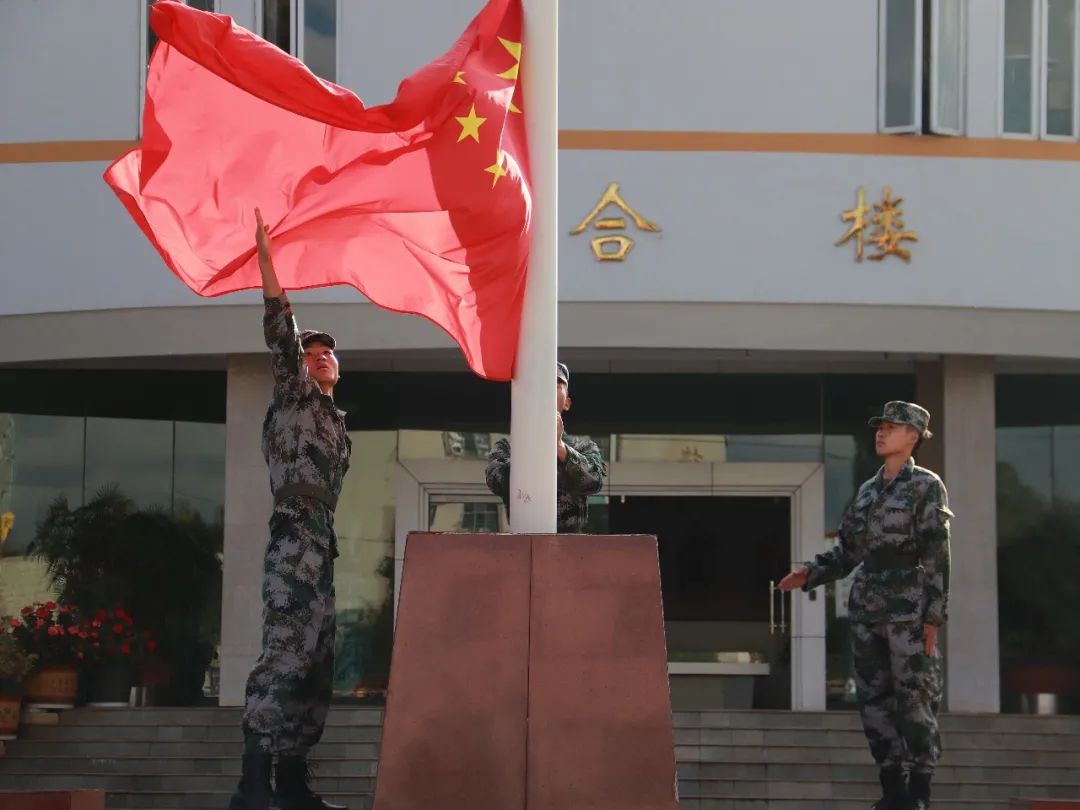 在主持人宣布升旗仪式开始后,全体师生行注目礼,仰望着冉冉升起的国旗,鲜艳的五星红旗迎风飘扬。全场肃穆,齐声高唱国歌。